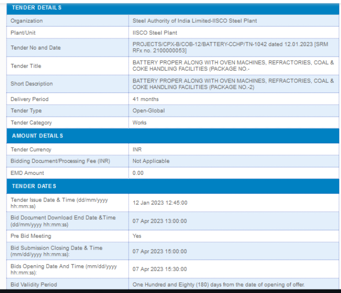 BATTERY PROPER ALONGWITH OVEN MACHINES,REFRACTORIES, COAL & COKE HANDLING FACILITIES (PACKAGE NO. -2)