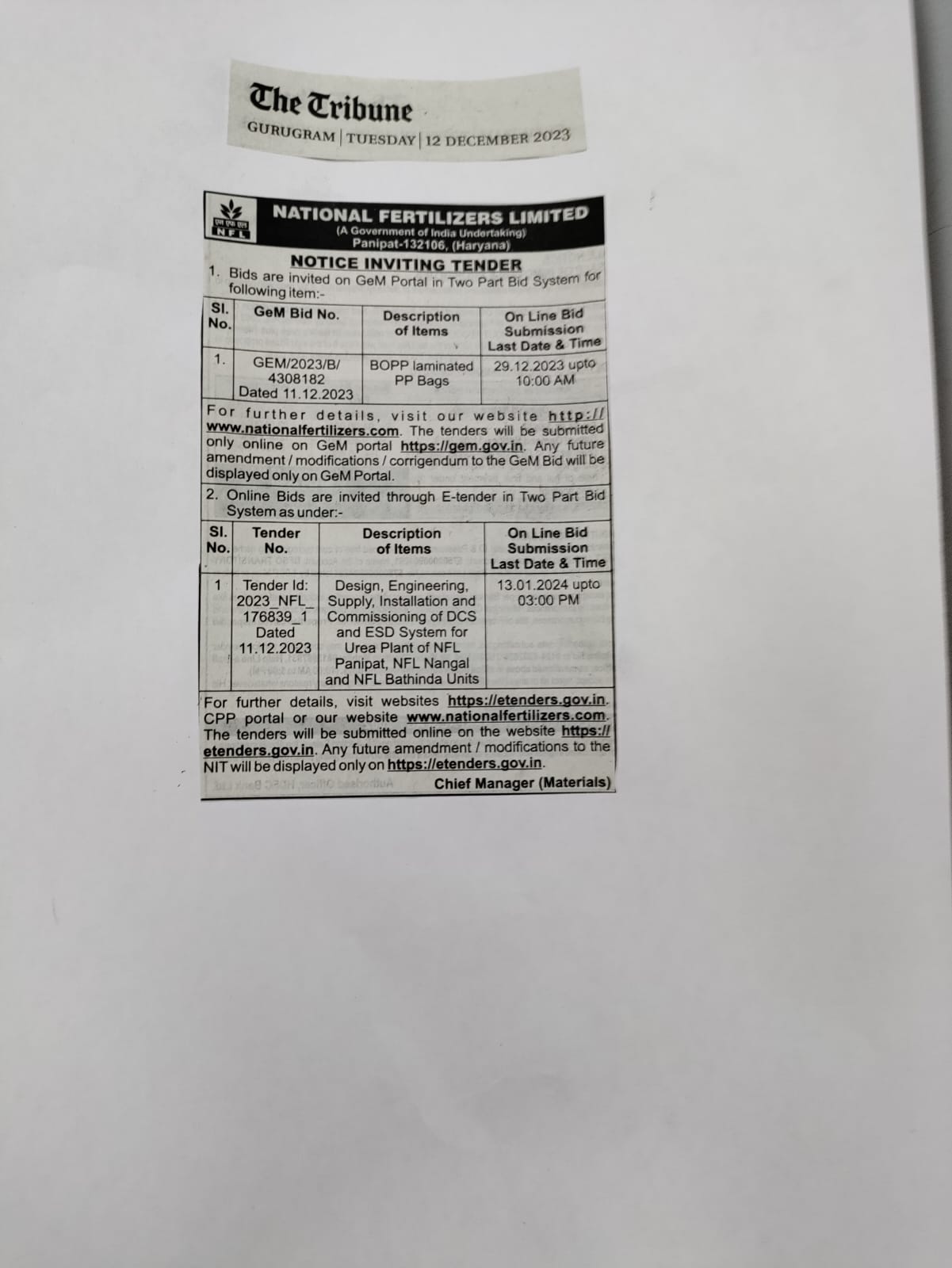 BOPP LAMINATED PP BAG FOR PACK IN G OF BENTONITE SULPHUR,CAP-05 KG WITH HANDLE AS PER ANNEXURE A of GeM Bi
