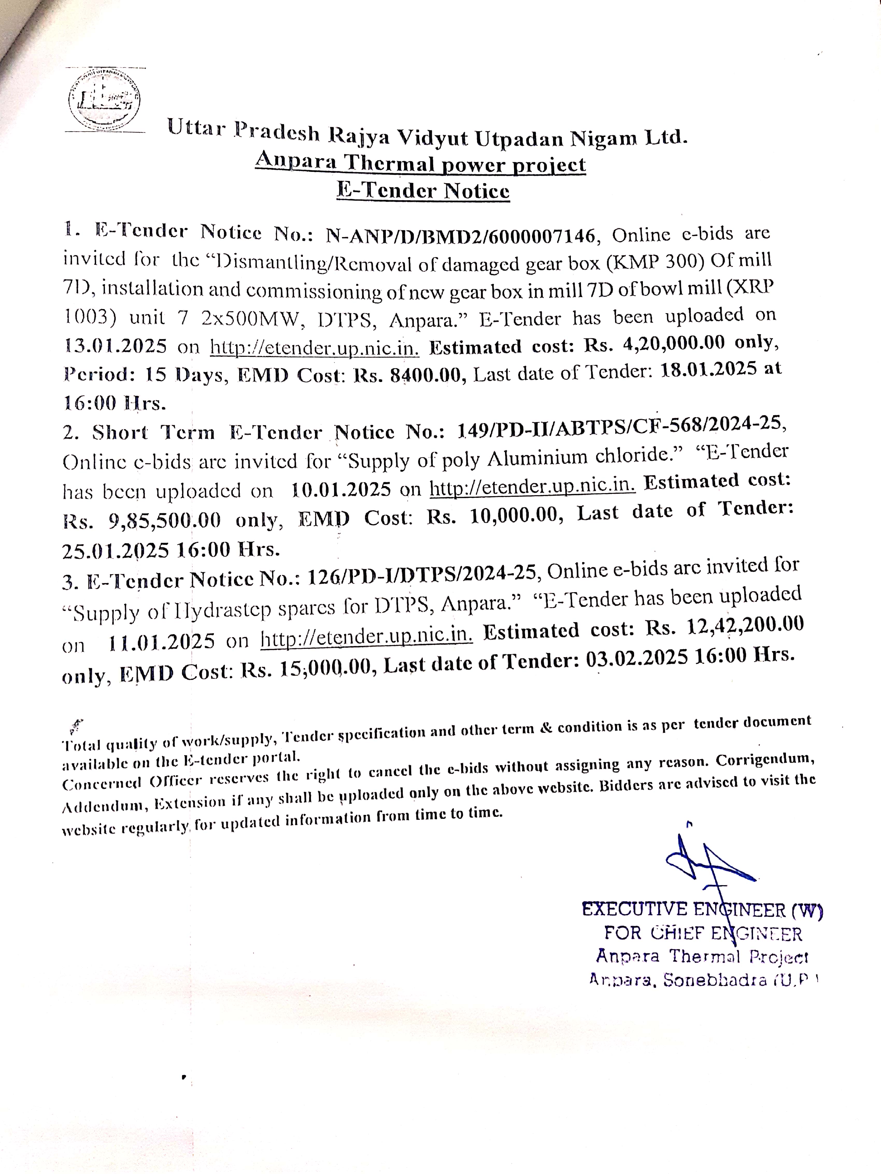 SUPPLY OF HYDRASTEP SPARES FOR DTPS, ANPARA ETC.