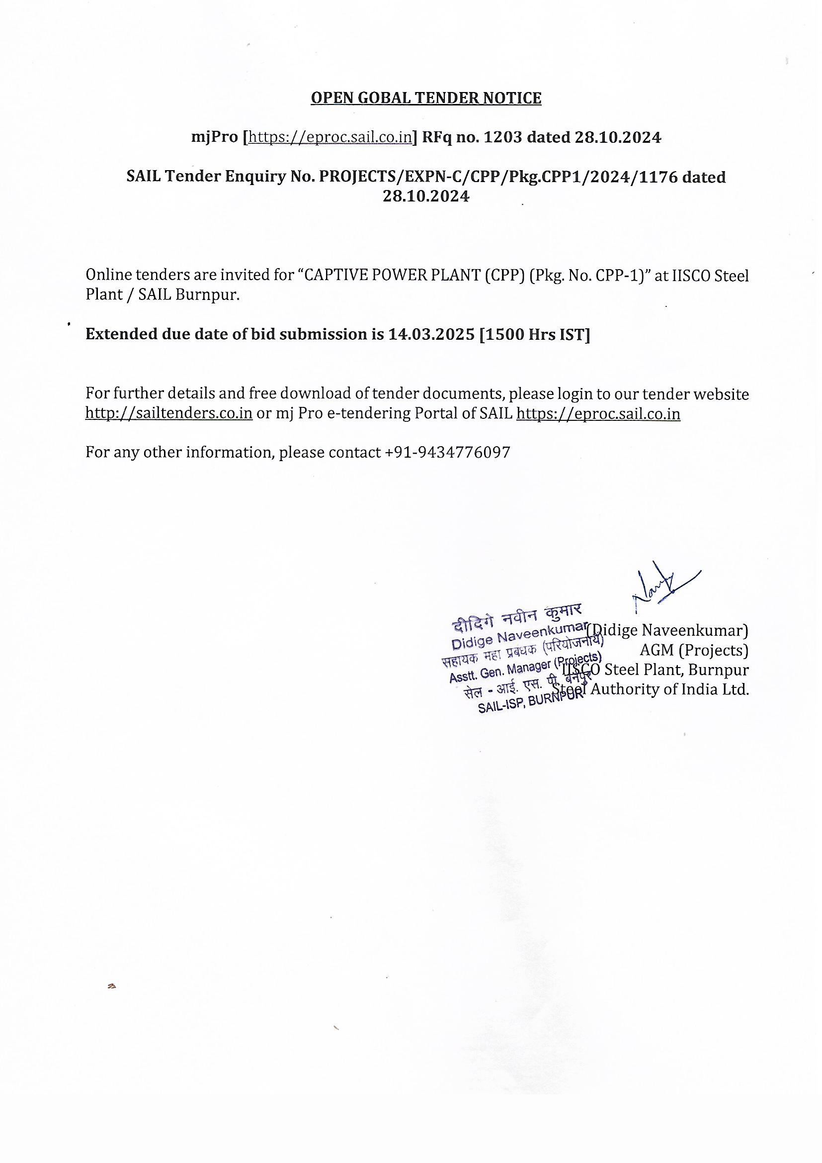 “Captive Power Plant (Pkg. CPP 1)" [RFqno.1203].