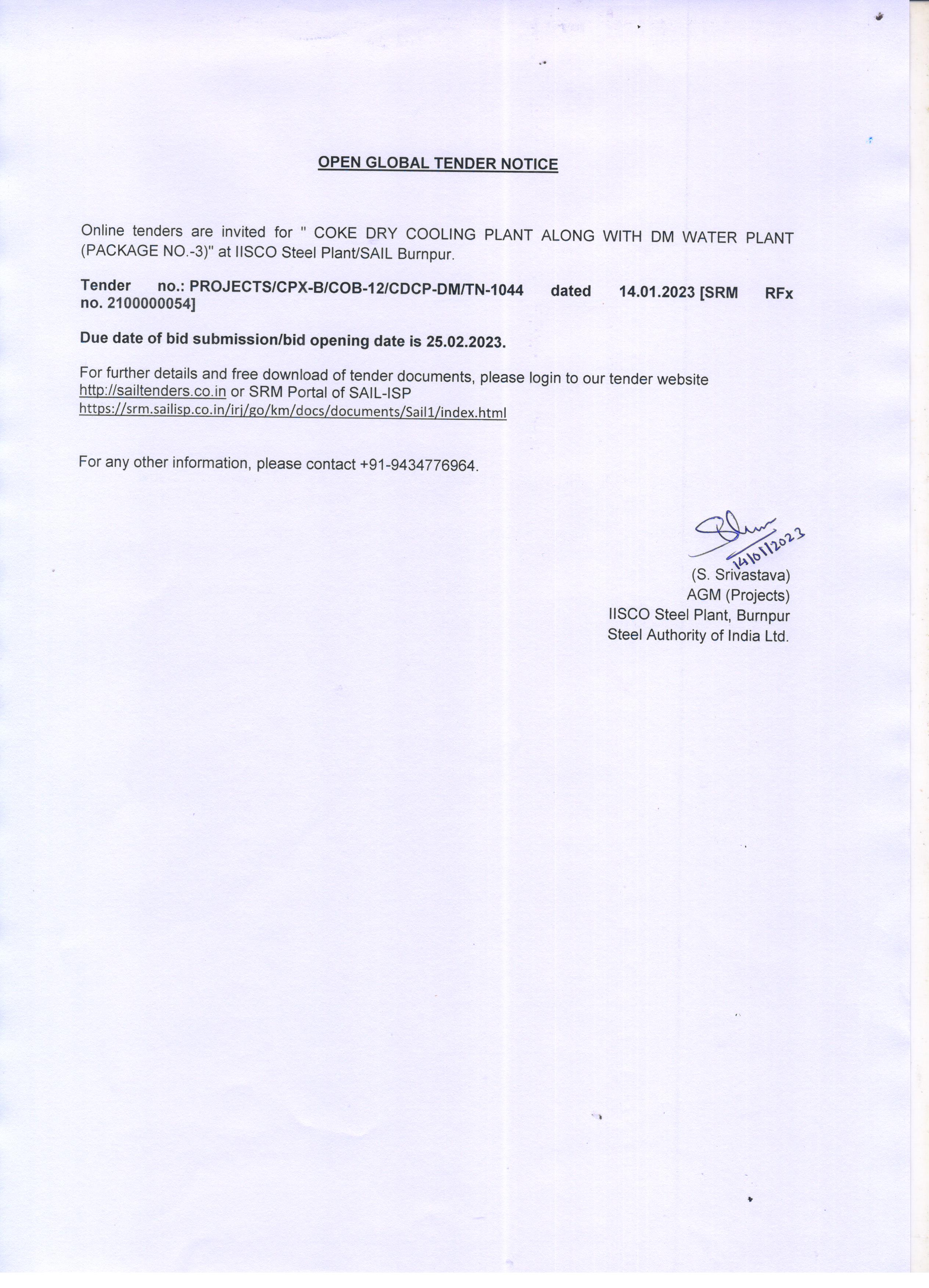 COKE DRY COOLING PLANT ALONG WITH DM WATER PLANT(PACKAGE NO.-3).