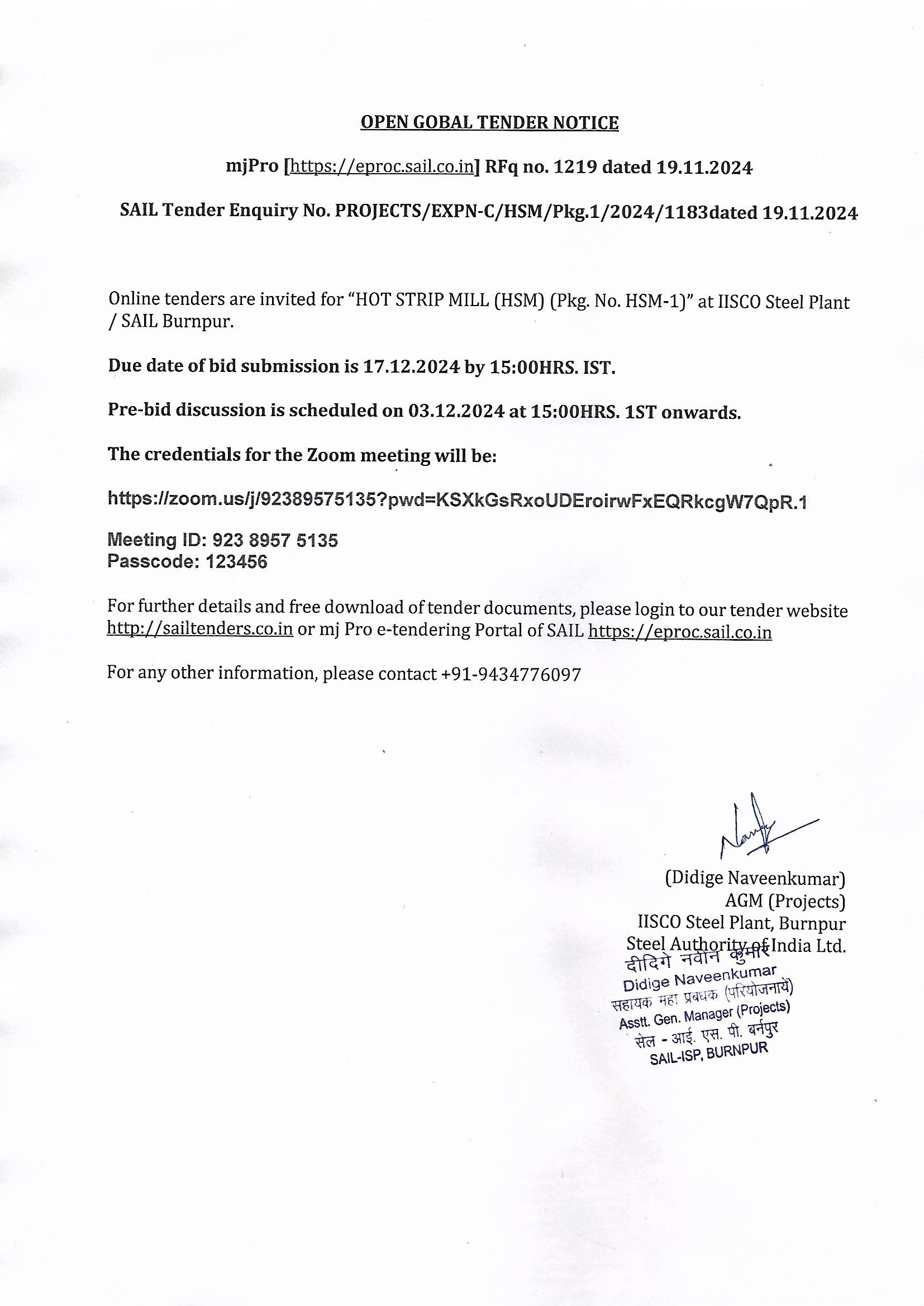 “HOT STRIP MILL - (PACKAGE NO. HSM-1)" [RFqno.1219].