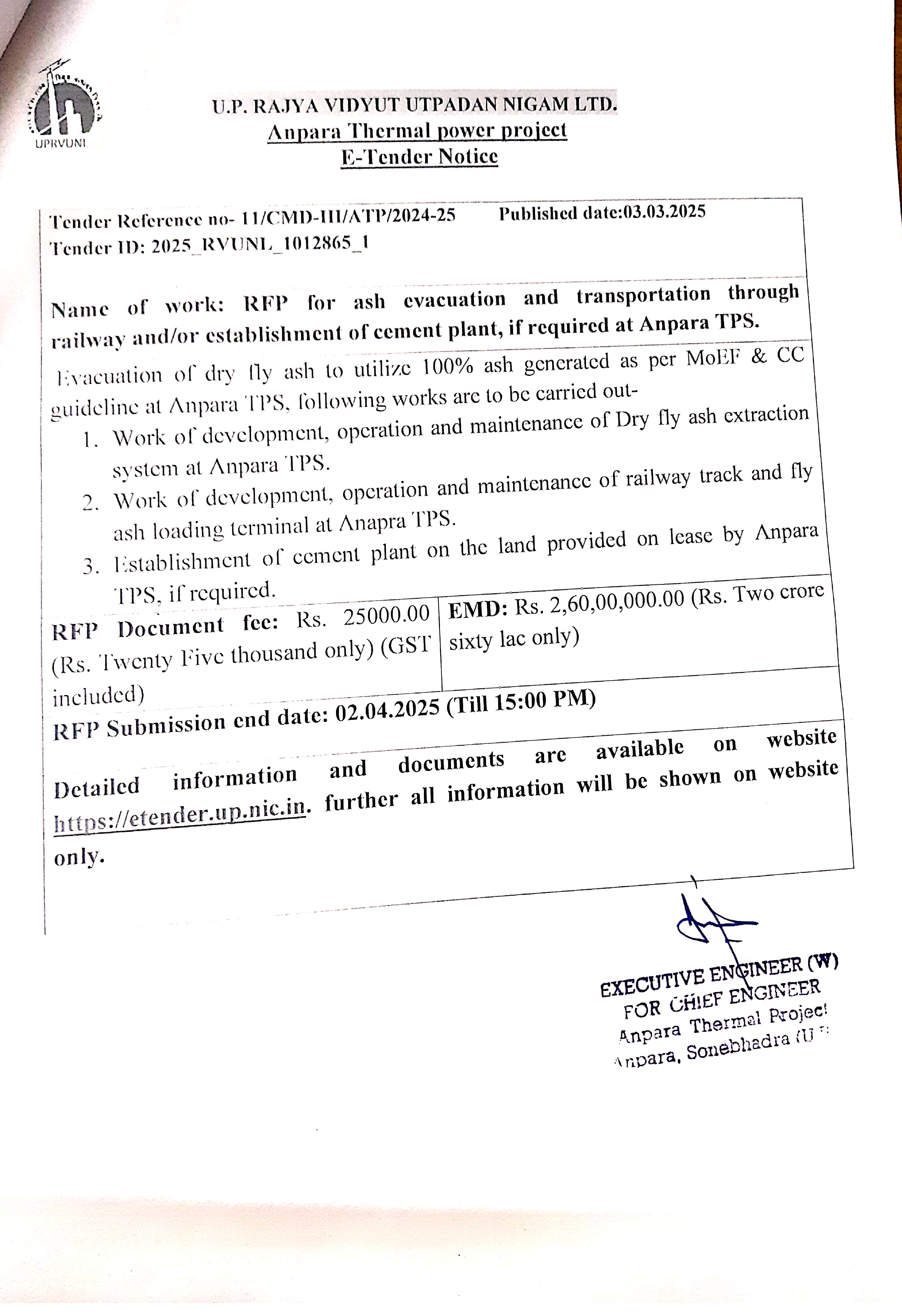 Work of development, operation and maintenance of Dry fly ash extraction system etc.