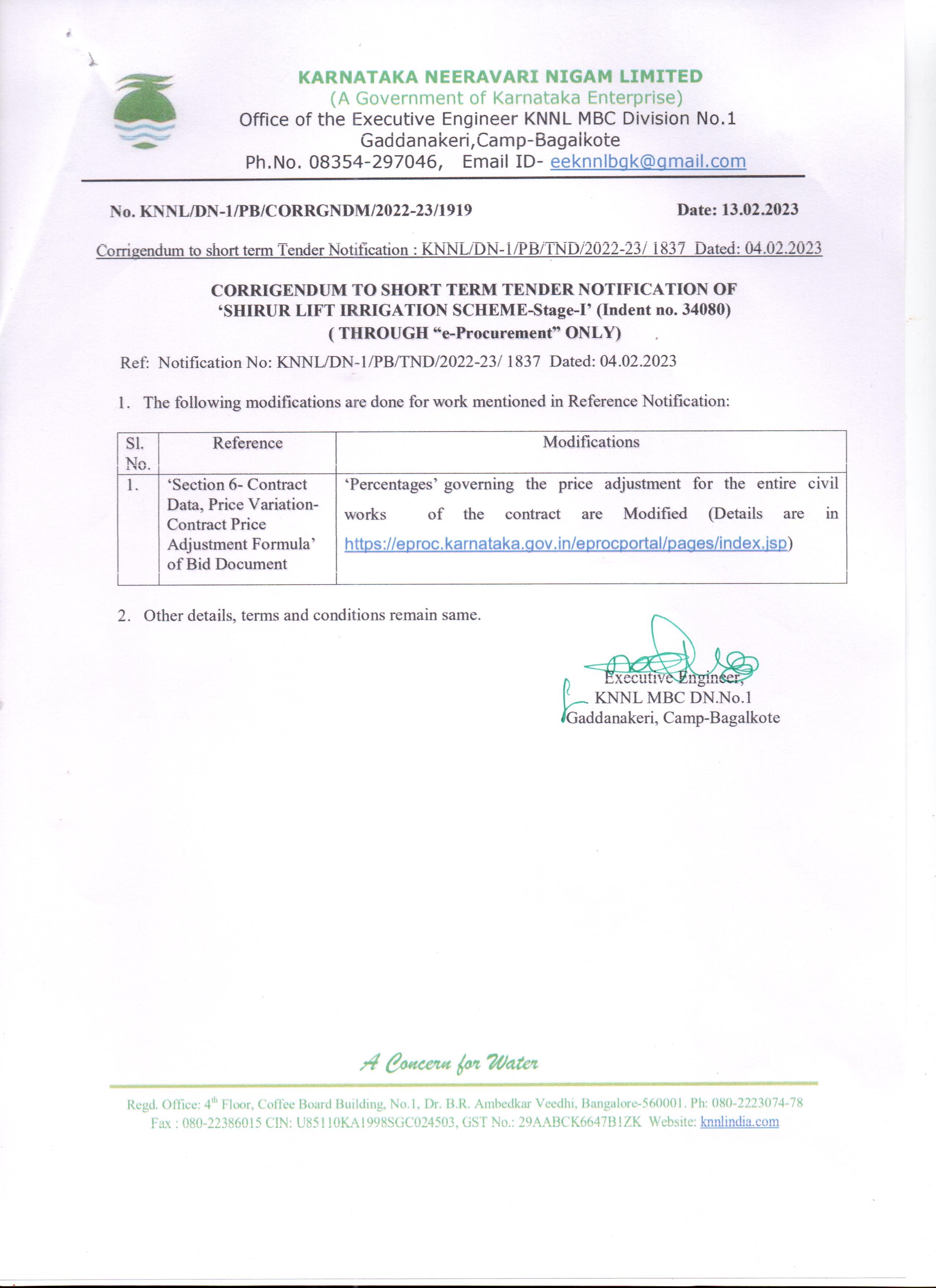 Re: SURVEY, INVESTIGATION, DESIGN,SUPPLY, INSTALLATION, TESTING AND COMMISSIONING OF LIFT IRRIGATION SYSTEM ETC.