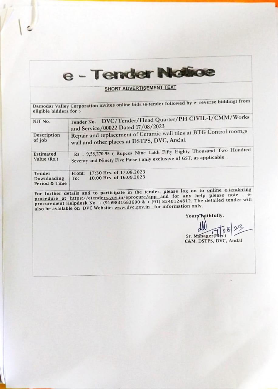 REPAIR AND MAINTENANCE OF WATER SUPPLY AND SANITATION PIPE LINE ETC.