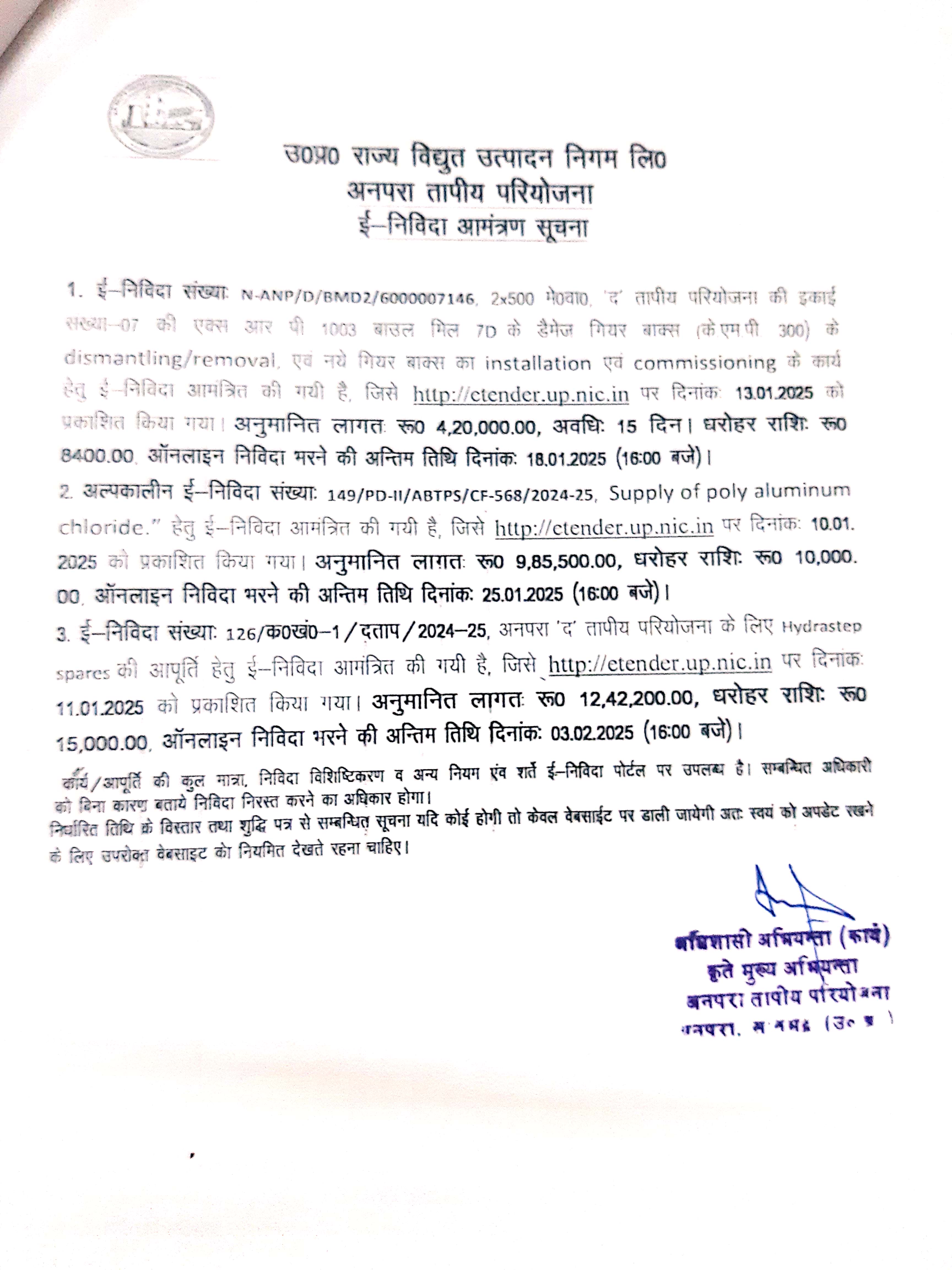 SUPPLY OF HYDRASTEP SPARES FOR DTPS, ANPARA ETC.