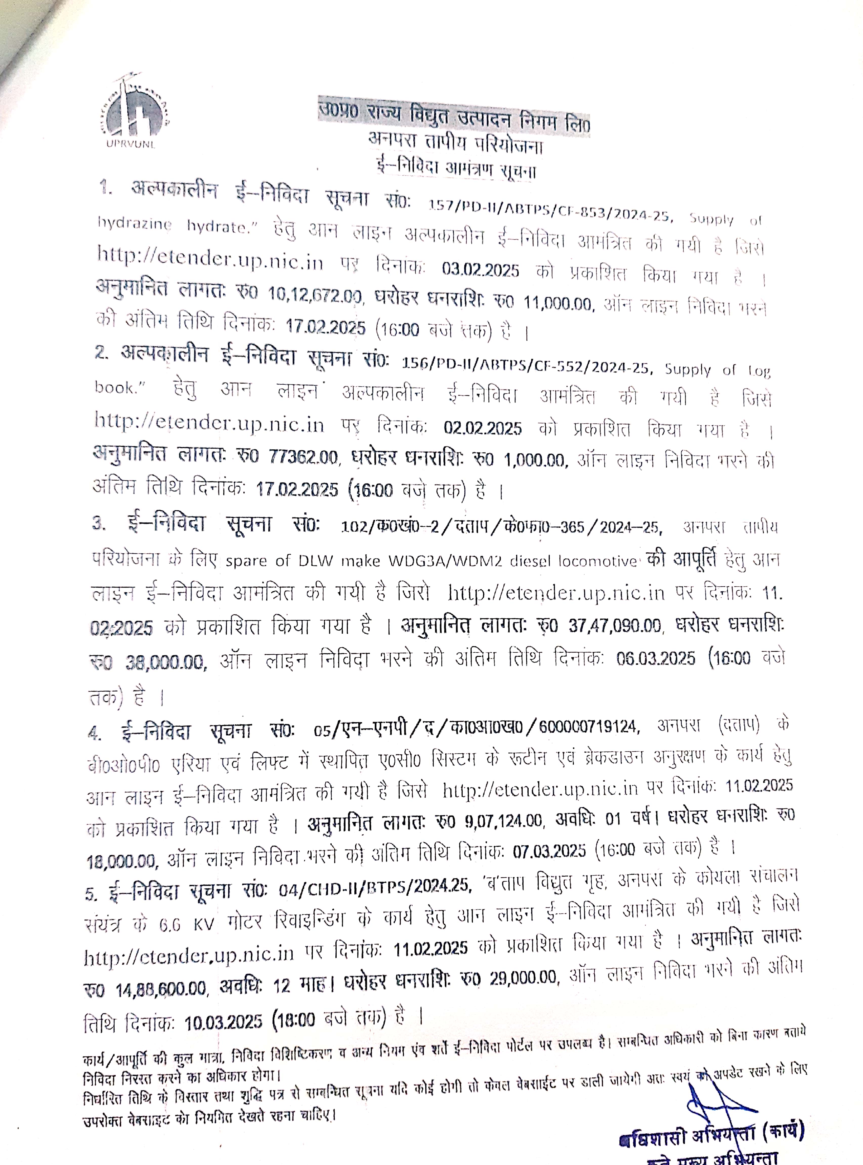 Routine & B.D. Maintenance of chiller, on line e-bid for 6.6 kv motors